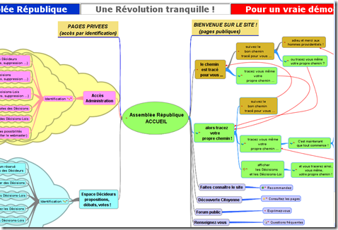 Le site comprend une grande carte heuristique, construite à l' aide de FreeMind, qui détaille le plan de la page.